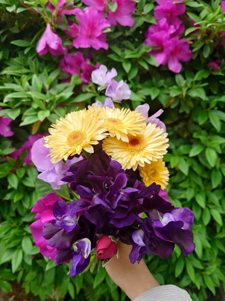 宿根のスイトピーとバラがすっごくいい香り🩷