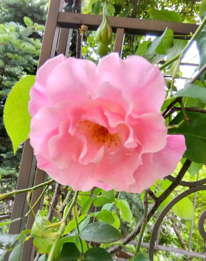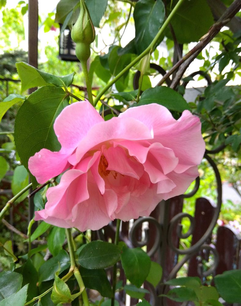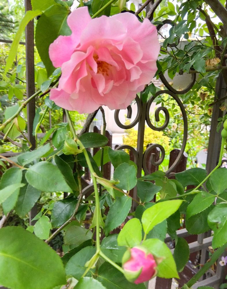 モッコウバラと同じアーチに無理に絡ませているので、表側ではなく、家側に向って咲いています😂