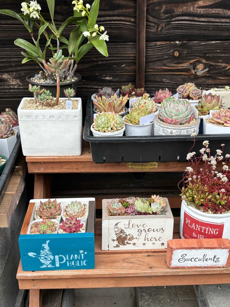 ちょっと多肉の色は覚めかけてるけど、木製品大好き💕
