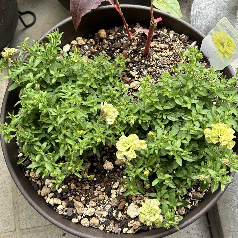 ①ペチュニアライム🌼お花が途切れたので次の蕾も付いてたけれど思いきって切り戻しました✂️