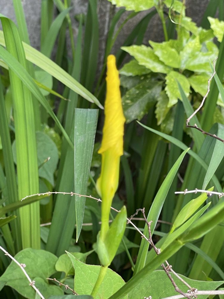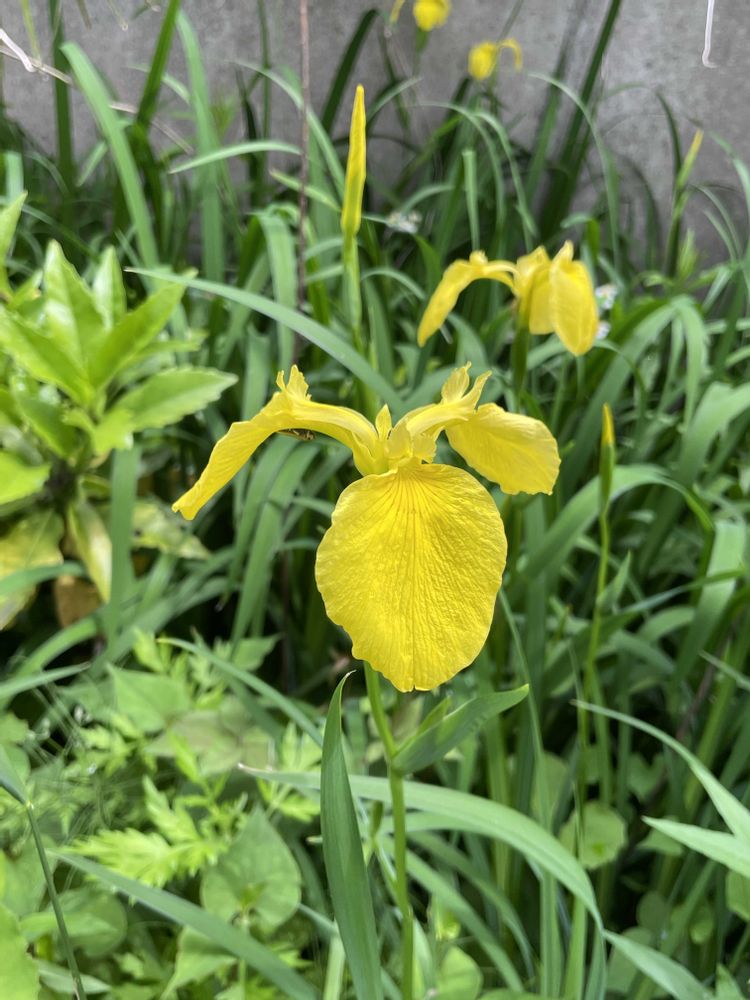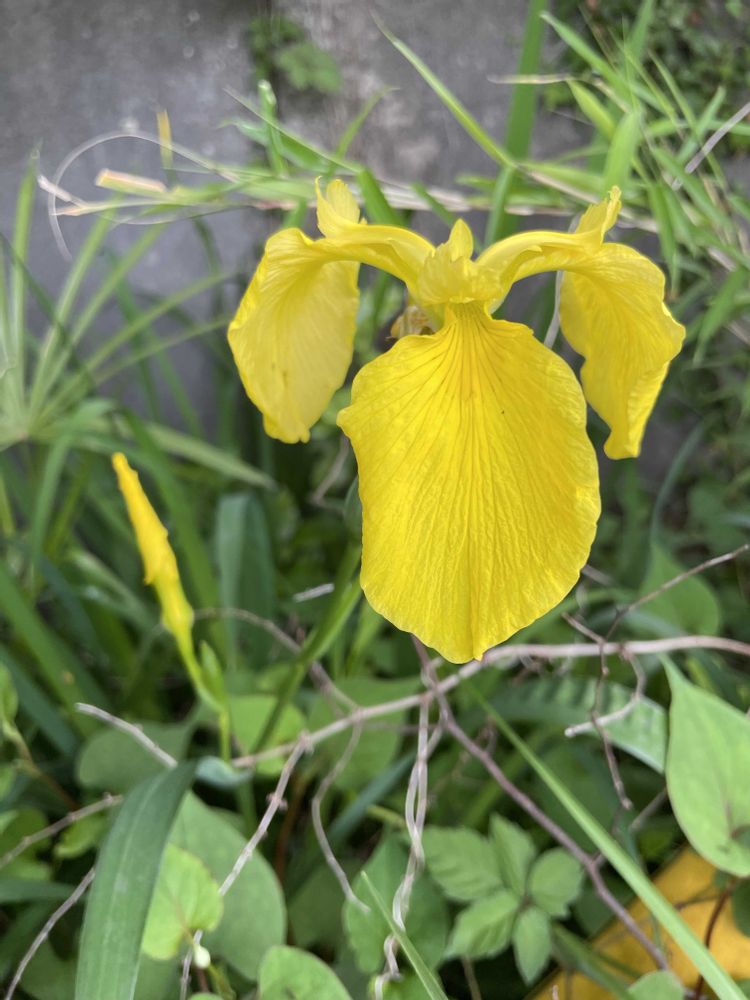 キショウブも何でこんな所に咲いているんだろう?側溝の近くで草が生い茂っている場所です。