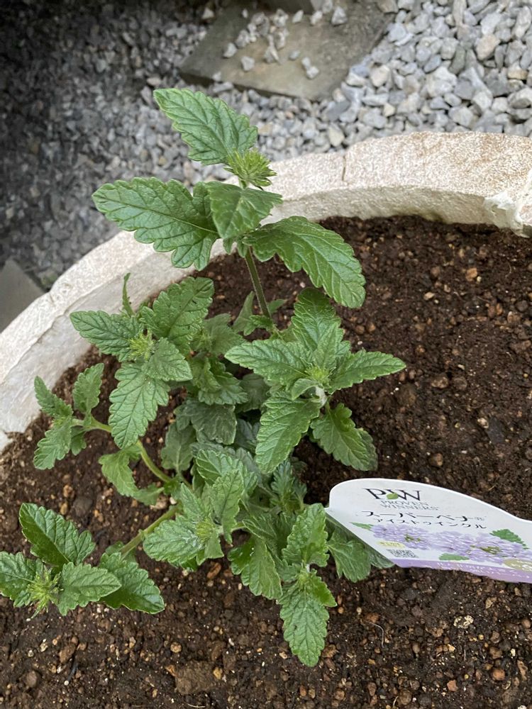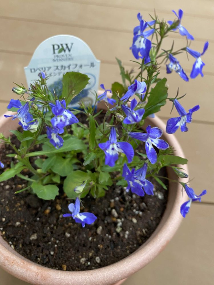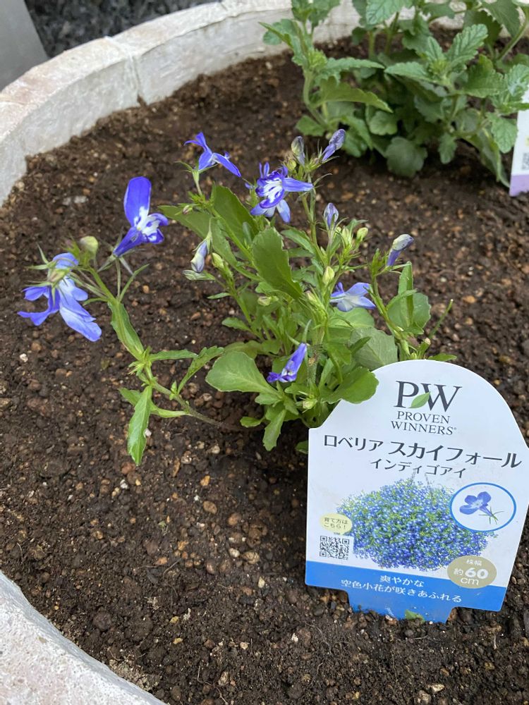 青いお花が欲しくて欲しくて、兎にも角にもでお出迎えした結果、水やりそんないらないロベリアとスーパーベナを一緒に植えてしまいました😇