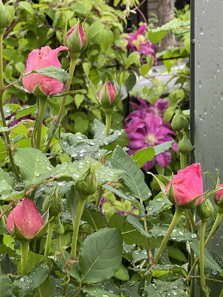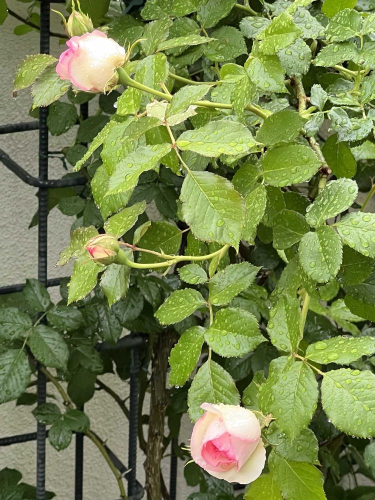 雨風で綺麗な薔薇が傷まないといいのですが、、、