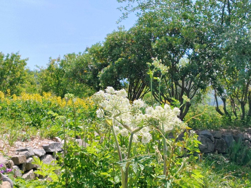 センダイハギやアヤメ、ミズキの花が見頃です。