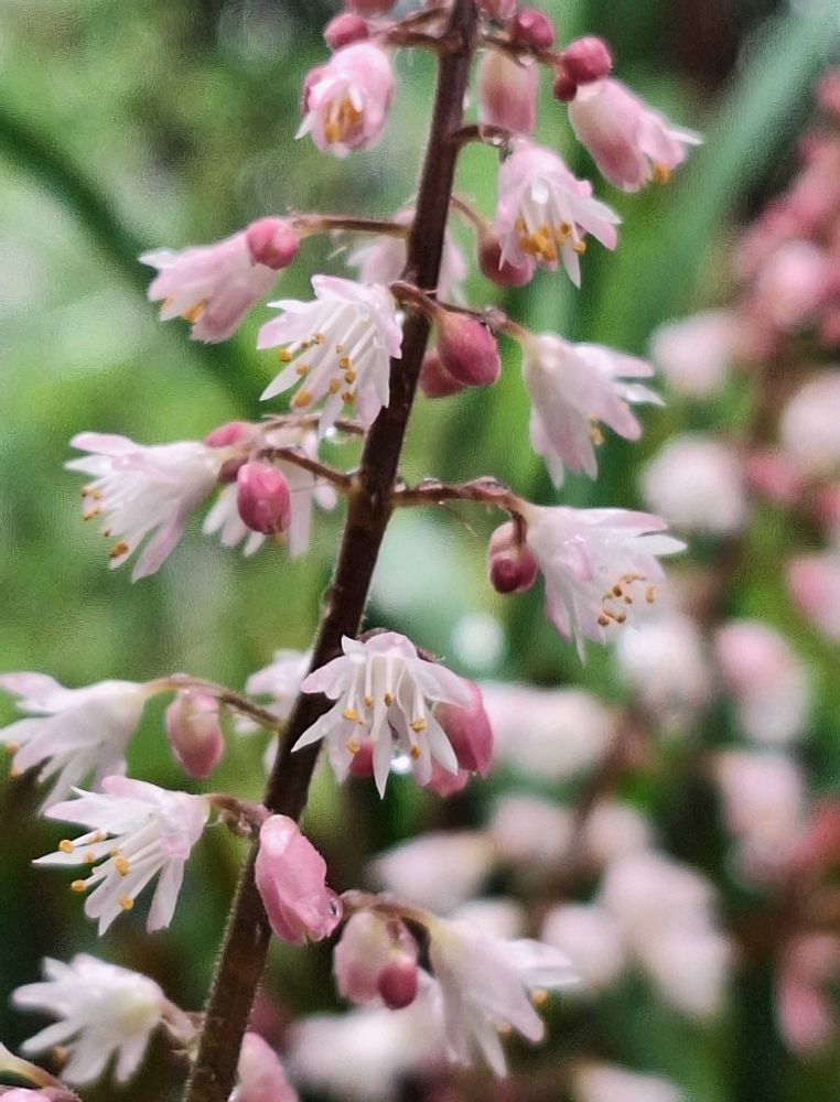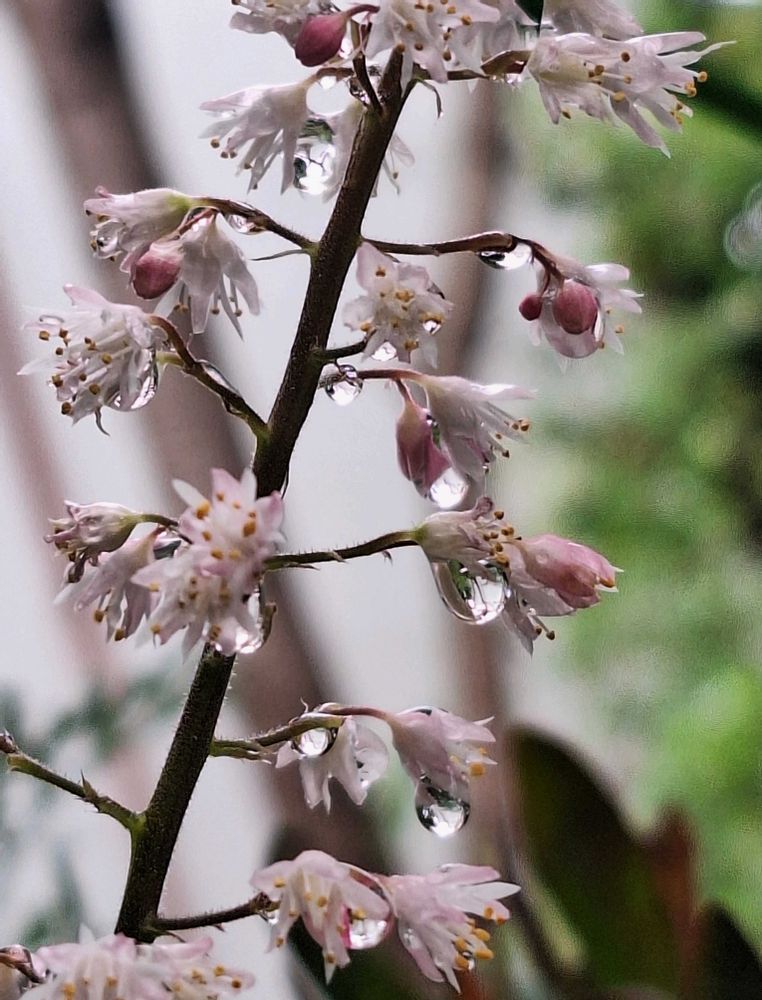茎と葉の色が同じで、花の蕾はピンクですが、咲くと白い花🤍