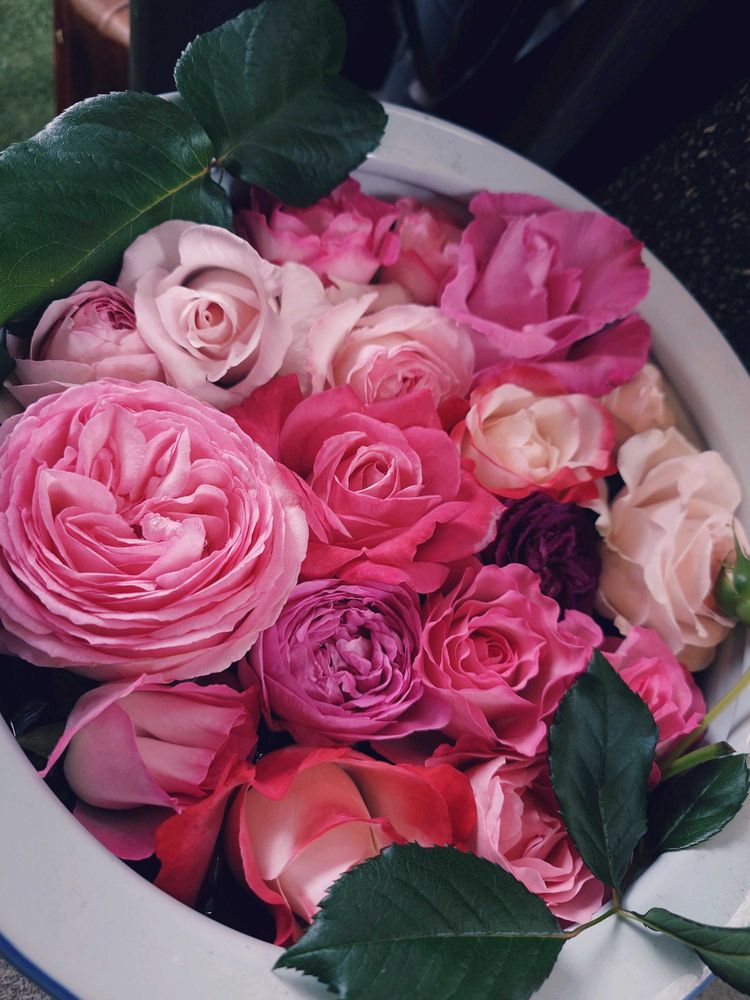 傷む前に薔薇さん達をカットして、玄関先に🌹
