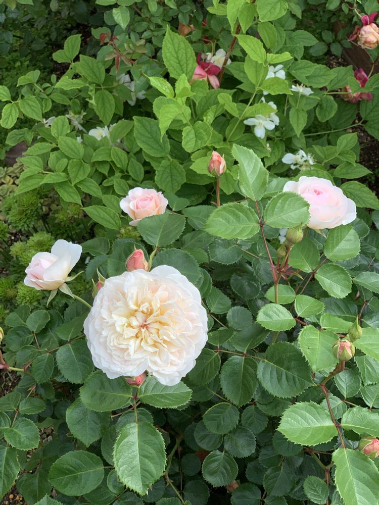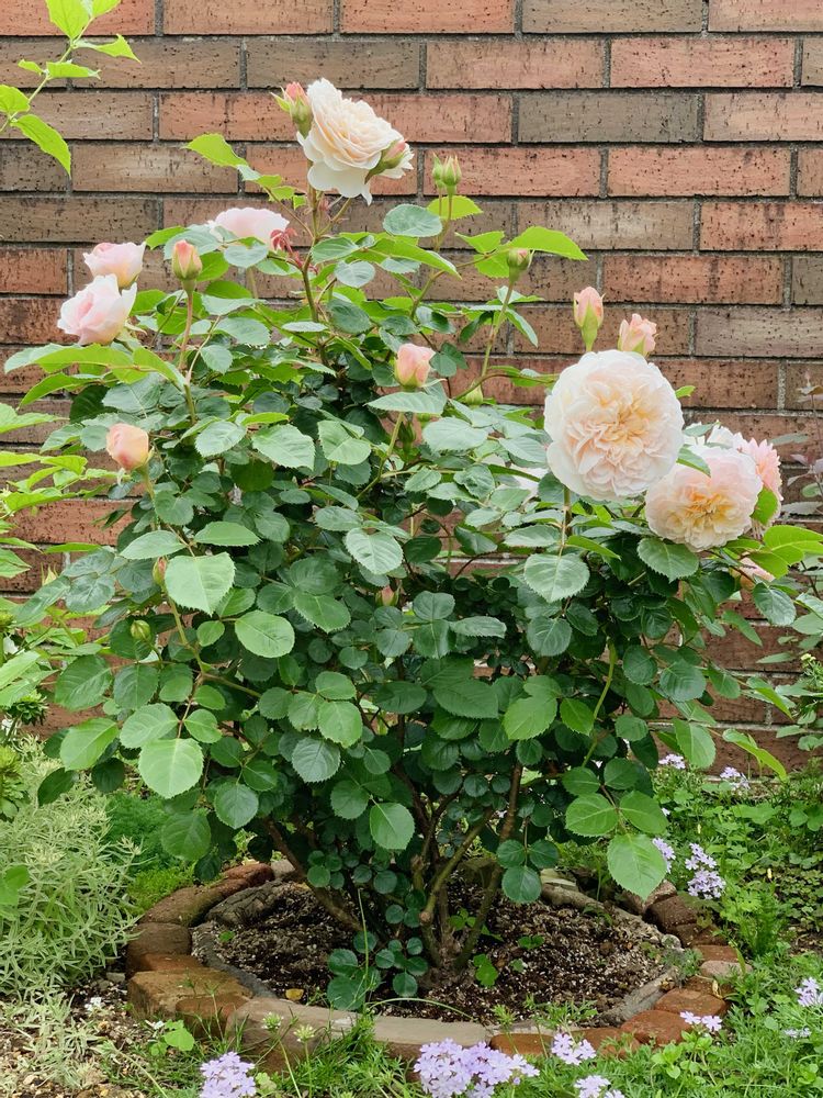おおがファームさんからお迎えして三年経ったERエミリー ブロンテさん 。蕾がたくさん上がってくれました。香りは抜群ですし、ゆらゆら垂れてる空飛ぶ円盤状の花がたおやかでとても気に入っています。