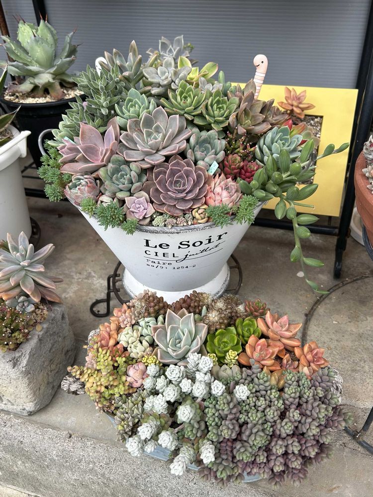 多肉の寄せ植えも色んな色があってかわいいね!😊
