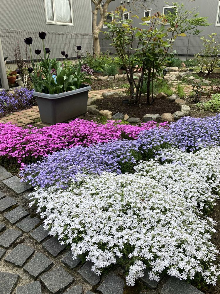 反対側の芝桜のオーキントンブルーアイだけ花数が少なくてちょっとハゲてる…