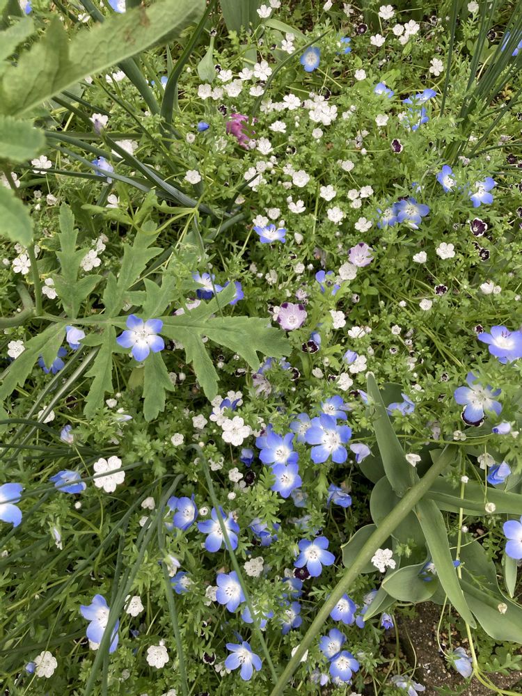 5→零れ種花壇のネモフィラ達🩵もうキチンと咲かせるのは諦めてます😅