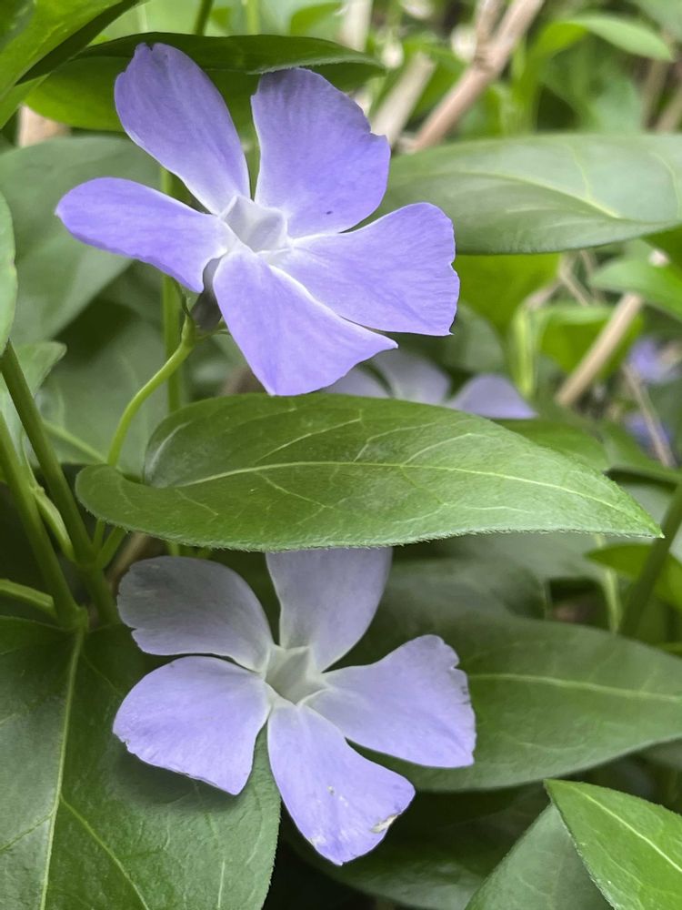 綺麗な色のツルニチニチソウですが、どこまでもツルが伸びて大変です😅