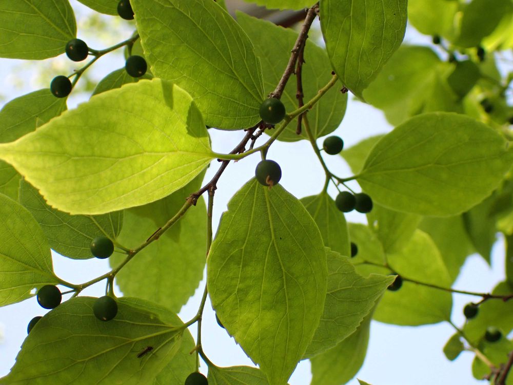 上を見上げると、エノキの果実ができていました。