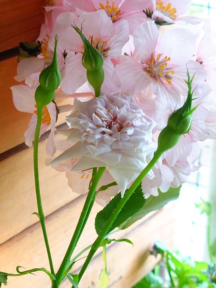 最後まで頑張ったウインティーローズ&ピーチもさすがに限界ということで、切り花にしました。