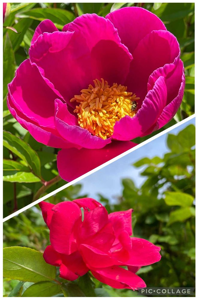 ご近所さんの牡丹と我が家のミニ薔薇🌹