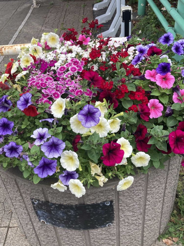 こんばんは🌉♪(๑ᴖ◡ᴖ๑)♪寄せ植え素敵ですね💕とても華やかです╰(*´︶`*)╯♡生花もなかなか難しいですがアレンジメントフラワーも簡単なようでなかなか難しいと思います😅母親👵が生花やっていて、私はセンスがないとよく注意されています😅💧こんな風に沢山のお花をアレンジ出来るようになりたいです🤭