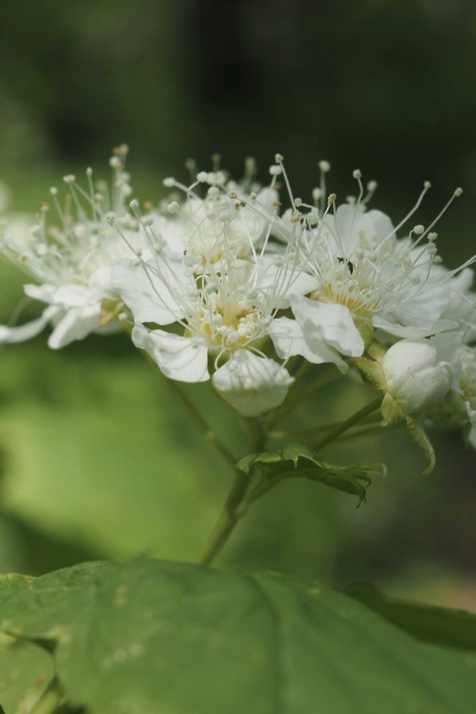 ①② シロバナシモツケ(白花下野)バラ科シモツケ属の落葉低木。だと思っています。登山道は違いますが、二ヶ所で会えます。この花に出会うたび、行き合う人に聞きますが、誰も期待する答えを教えてくれません。残念。