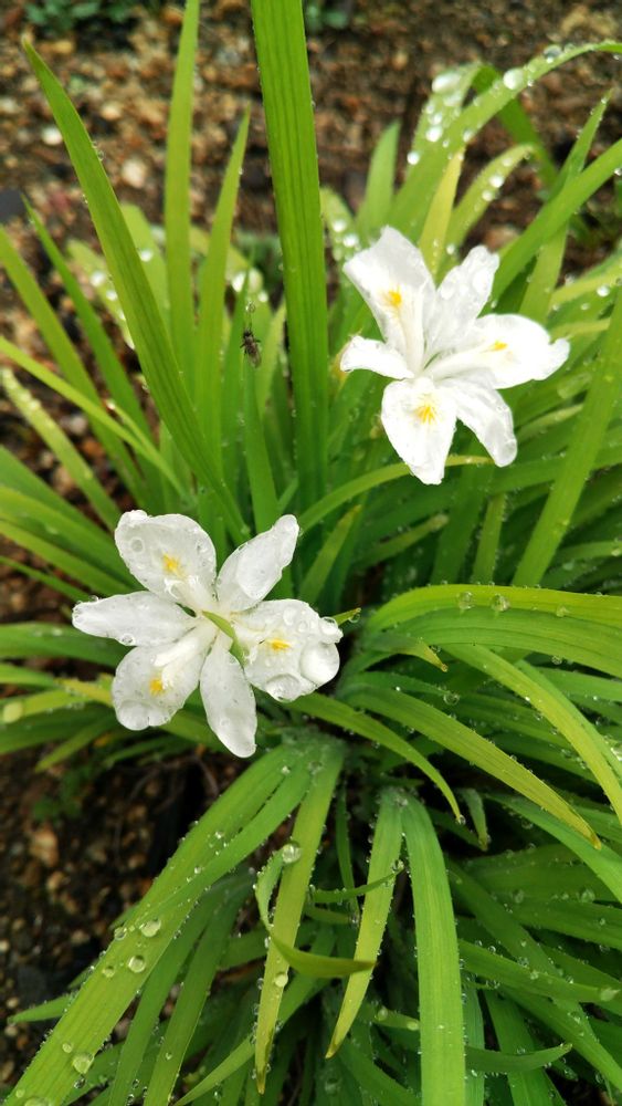 白色シャガは紫と比べて開花が遅く、今朝雨のなか開花しました🌿