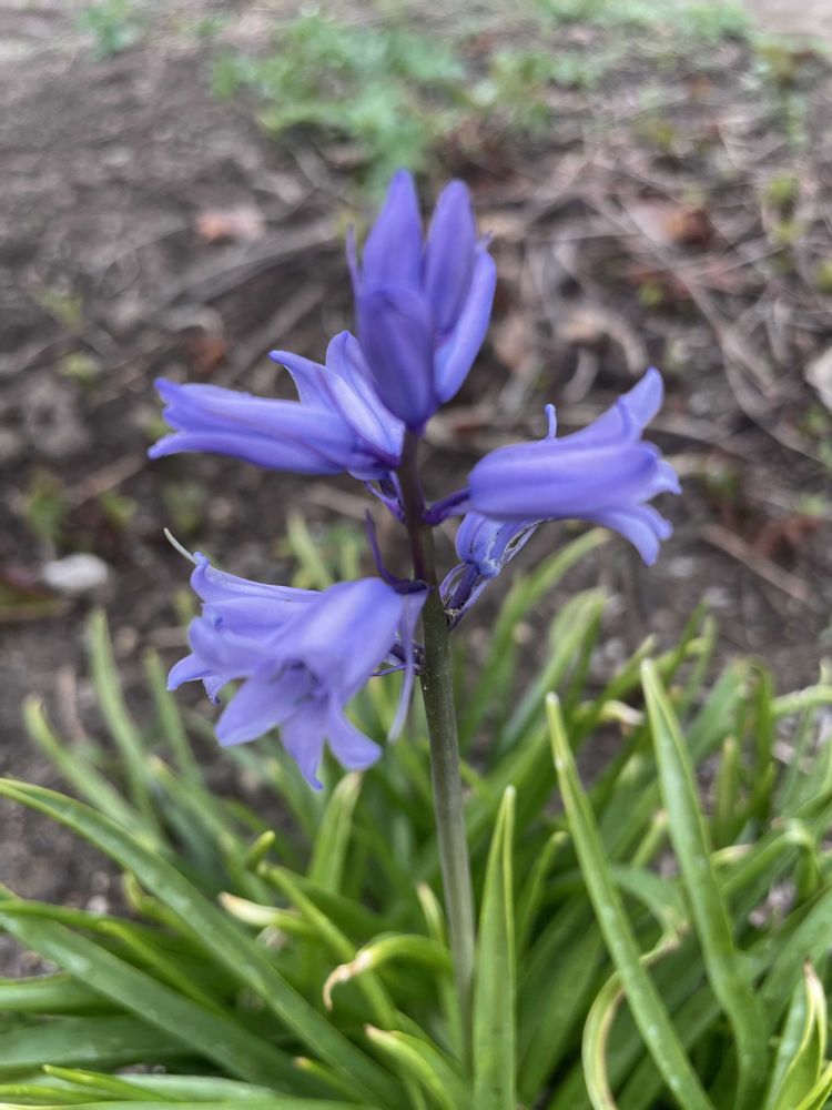 シラーカンパニュラは、葉っぱはたくさんあるのに、何と花茎は1本だけです🤣🤣