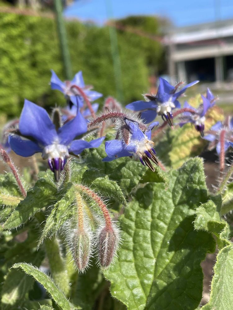 ハーブ畑にシラーカンパニュラータとこぼれ種からのボリジが咲いていました💙