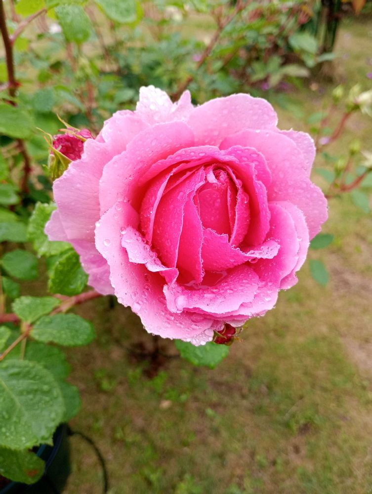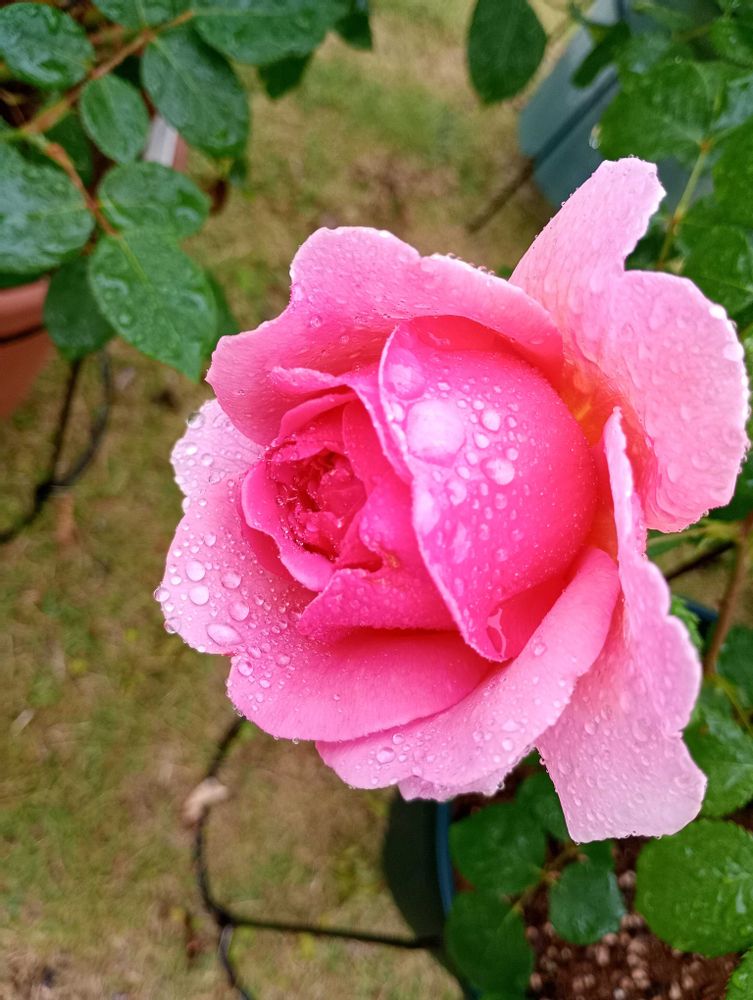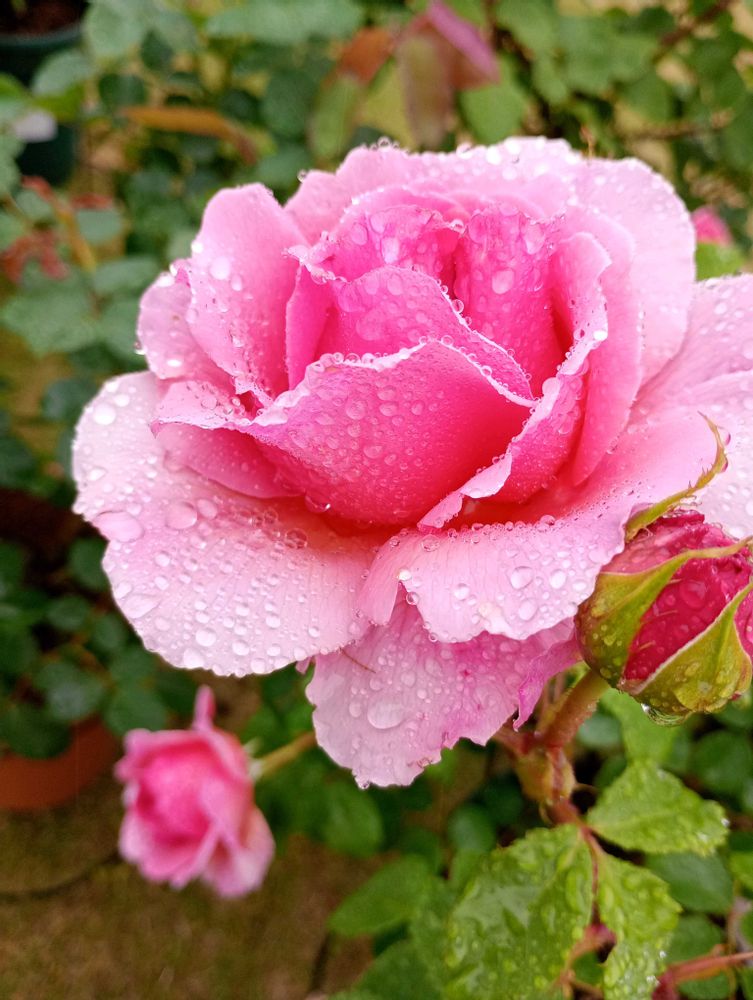 暗いお天気にプリンセスアレキサンドラオブケントさんのピンクが映えて雨のしずくでさらに美しさが増してますね♥