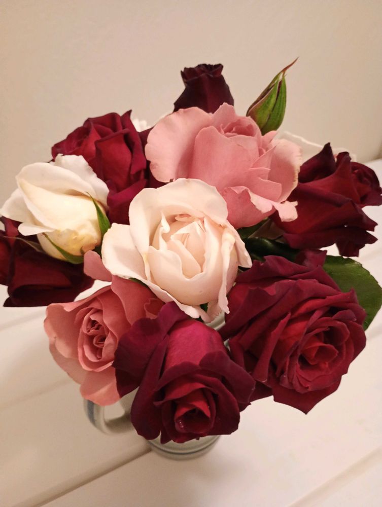 最後のアレンジは昨日の夜カットした薔薇たち😻