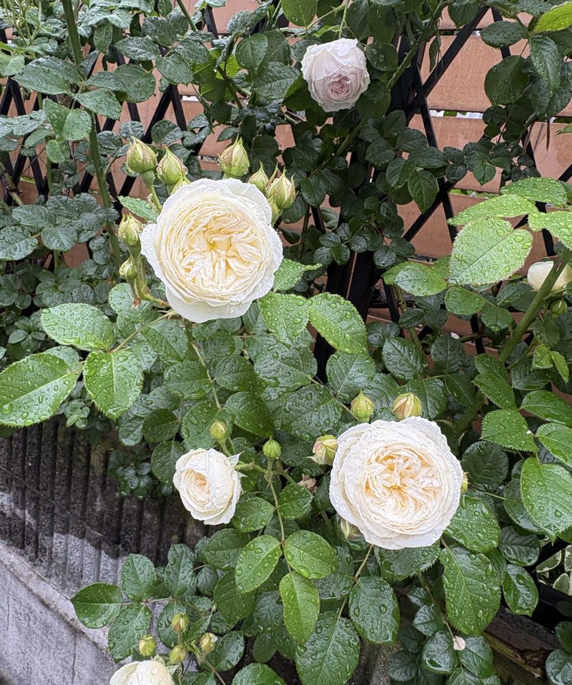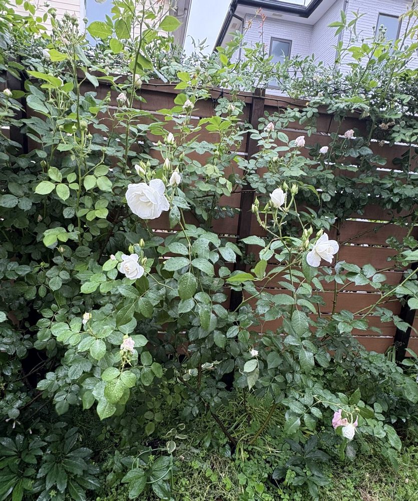 日を求めるのか思ったところに花が向いてくれないのがバラですね💦うちもそうです🤭白系のバラがたくさんあって優しくてお洒落なお庭ですね♡