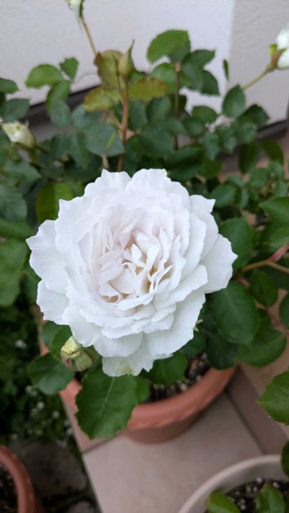 ガブリエル様ですね。いと美し。日当たり良好の場所なので花色の青みは抜けている感じでしょうか。純白の君も美しい。相変わらずのすーっと鼻奥にくる爽やかな香りがたまりません。鼻から脳に直接届く強い香り。植物タグもズレるほどの強い香り。