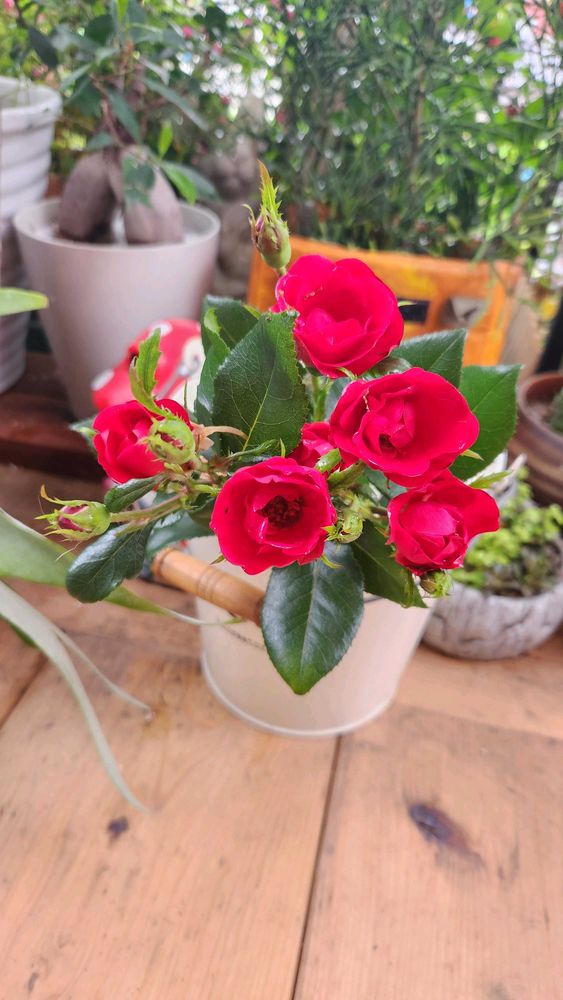 今年はもりもりに育って、たくさんの花を咲かせている鉢植えのミニバラ。