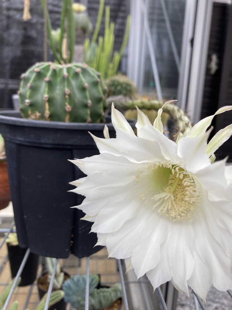美しい大輪の花です。数ヶ月かけて蕾が成長しますが、開花すると一晩で萎んでしまいます。そこも含めて魅力的なサボテンです🌵