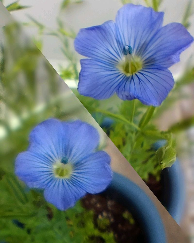 1️⃣花友さんに種を頂いた亜麻の花が咲き始めました😄💙💙