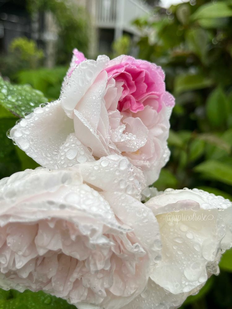 ルドゥテでは初めて見ましたが、同じメアリーローズの枝変わりのウィンチェスターキャシドラル(3枚目のpic)では見たことありました。一枝全部メアリーローズだった事も😁
