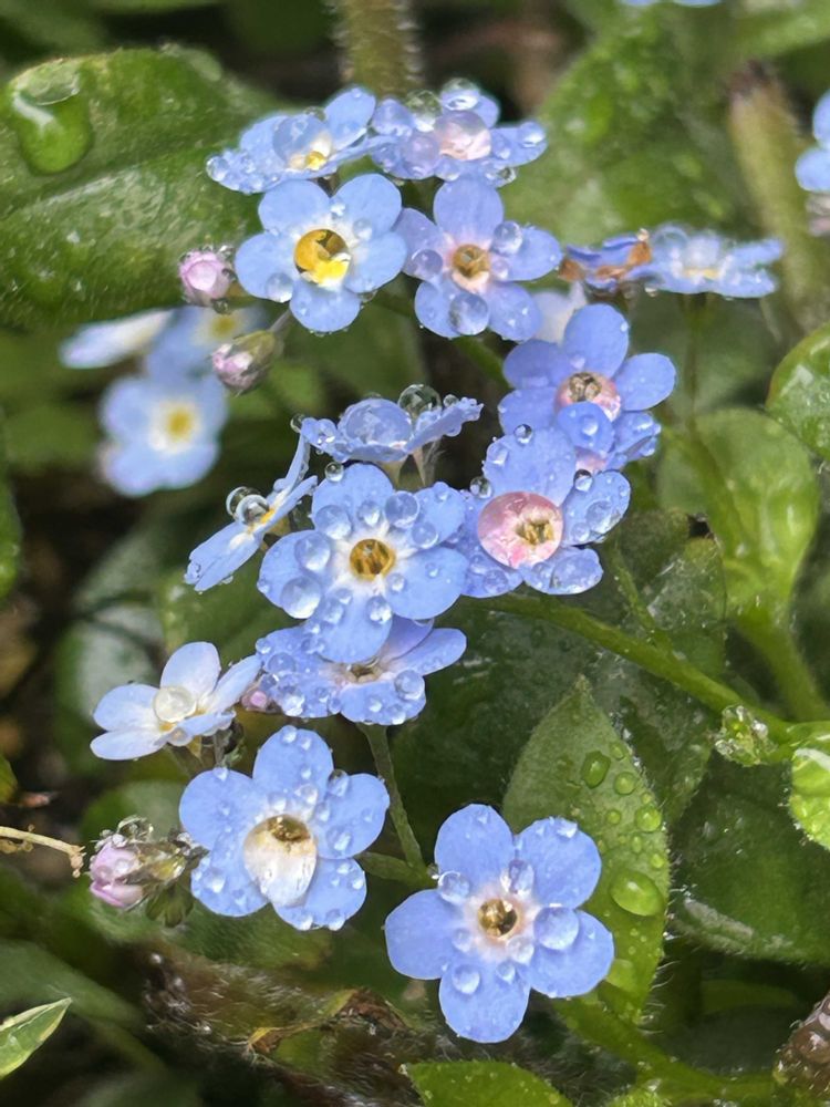 大輪ワスレナグサに付く雨粒、美しいね🫧🫧🫧🫧🫧🩵💙