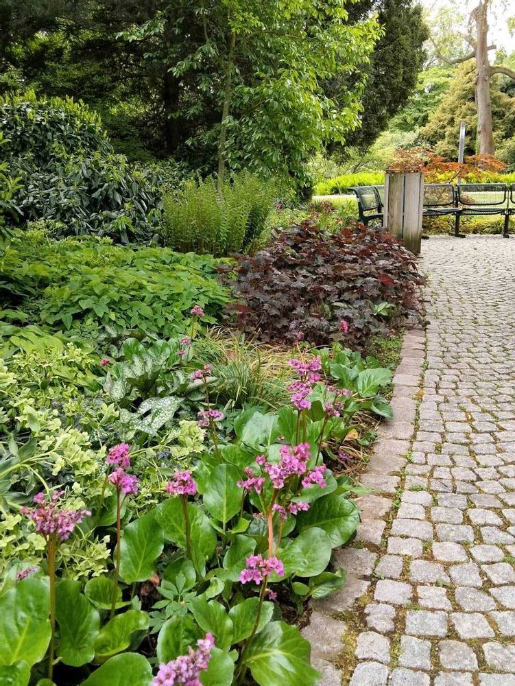 植物園のエントランスに続く花壇に整然と植えられたヒマラヤユキノシタやヒューケラが美しいです🍀