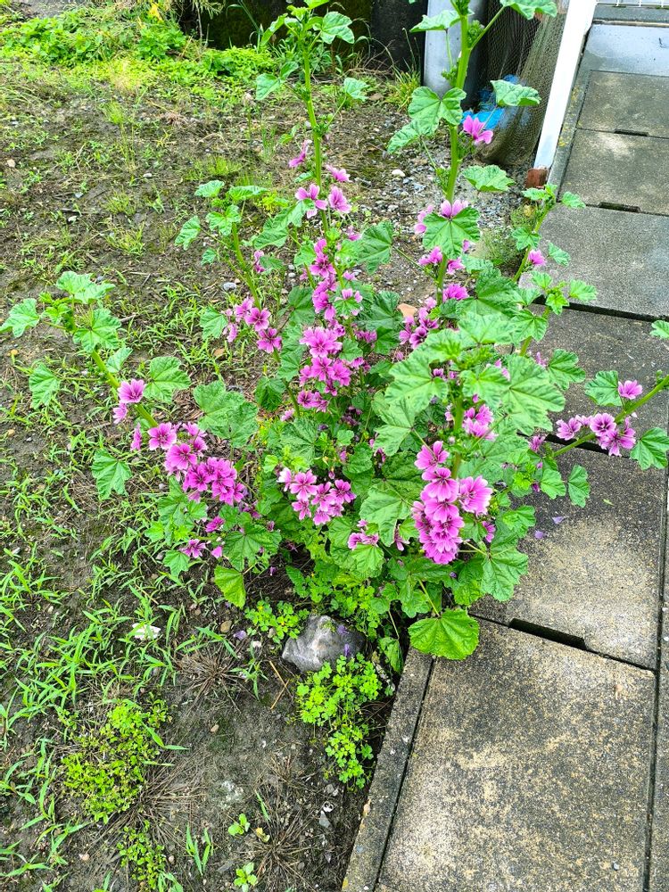 ゼニアオイだそうです。漢字は。。。銭葵。。。とか?金持ちにでもなるのかね〜