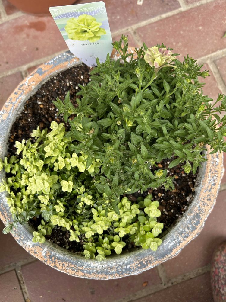 もう一株は、ヘリクリサムとも寄せ植えです♪