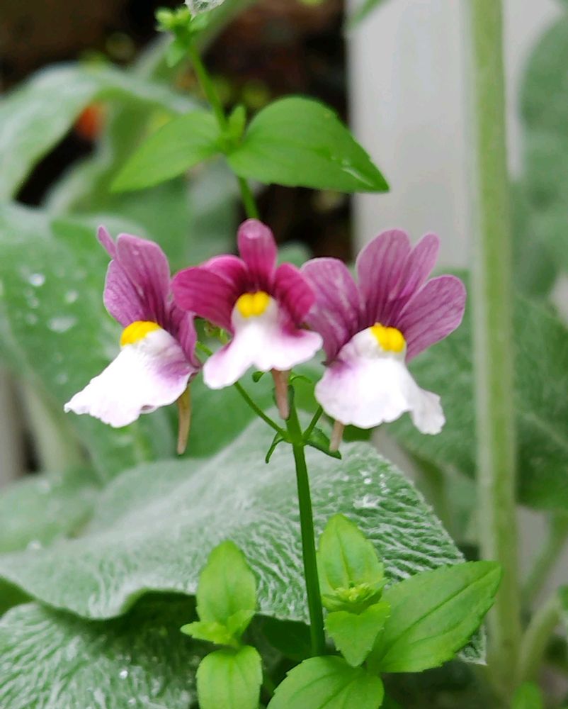 去年の寄せ植え鉢でネメシアさんが咲いています❇️💜🩷❇️