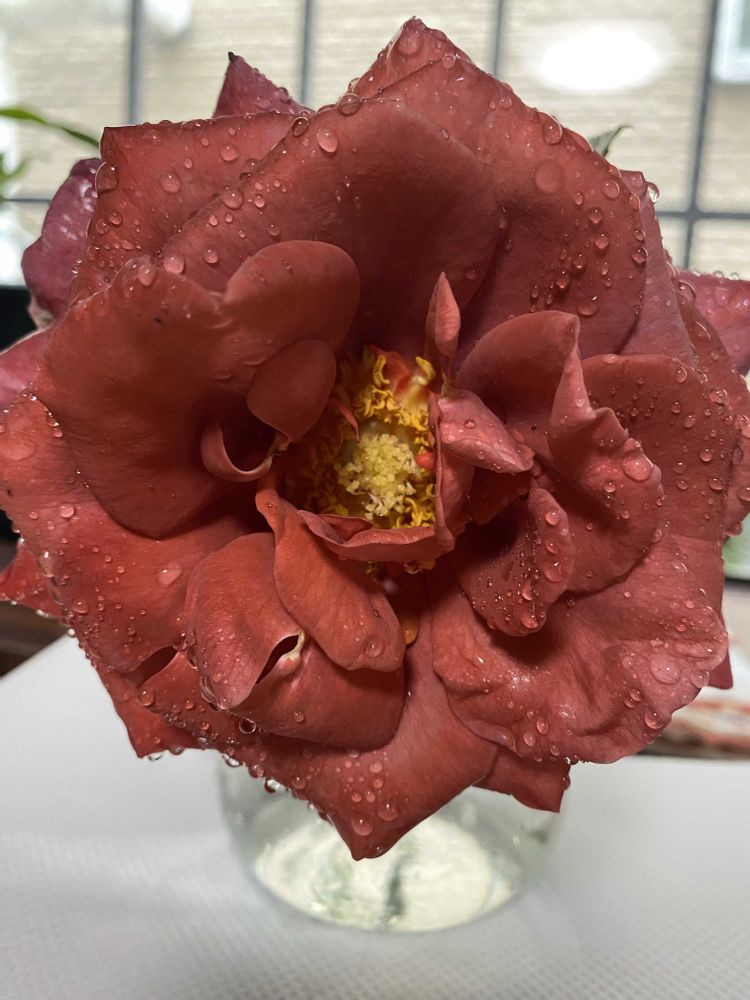 昨夜からの雨☔でベランダの薔薇達が項垂れていましたので切り花にしました。