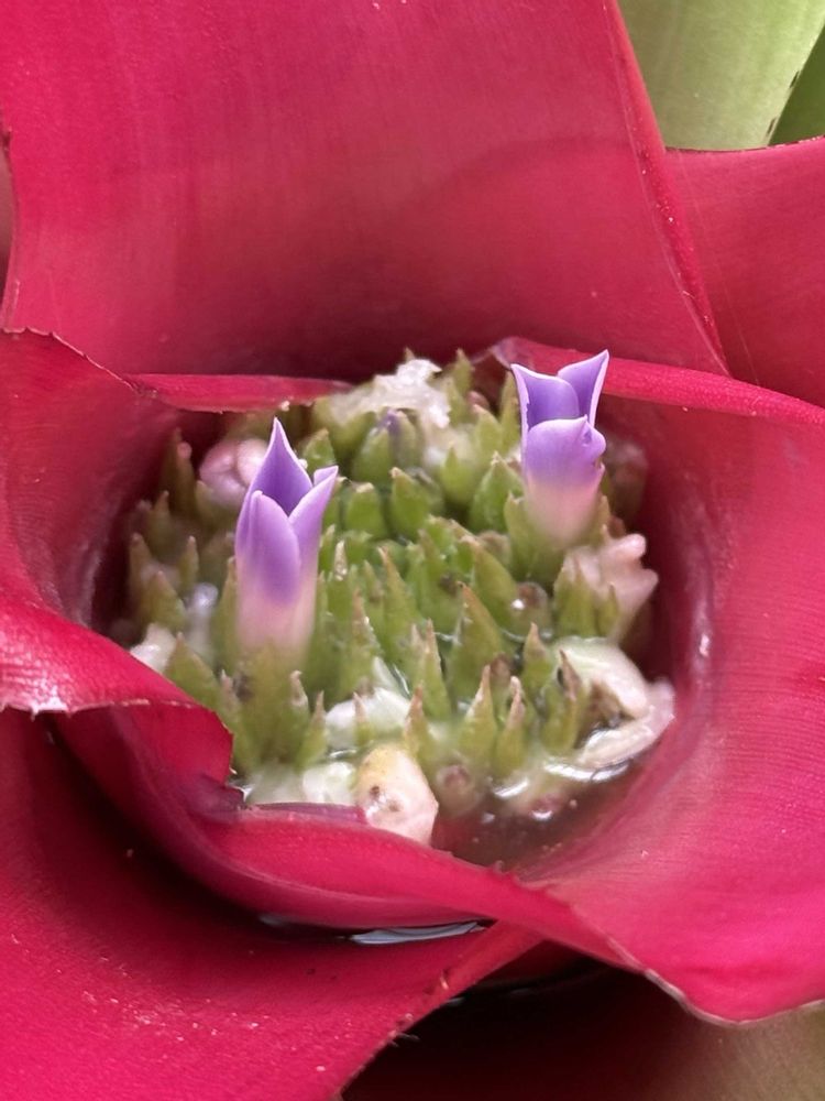 温室に行ったらネオレゲリアの中にお花咲いてました〜✨✨✨