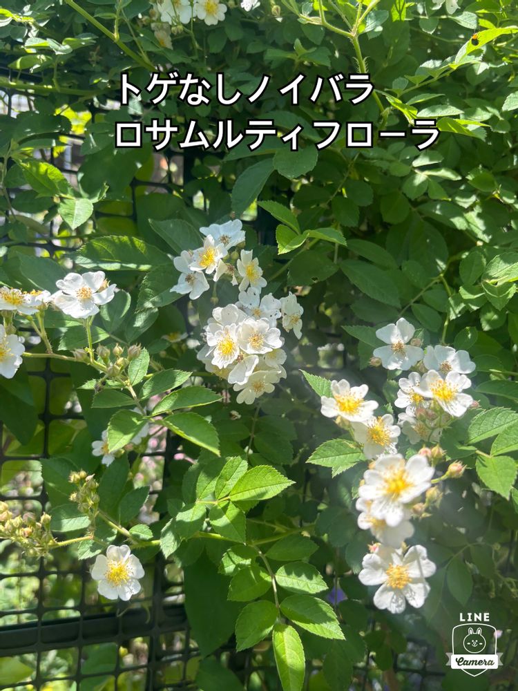 小さな白花の集まりのトゲなしノイバラロサムルティフローラは、お天気のいい日に撮ってるので、綺麗に撮れて(*・ω・)マス♪