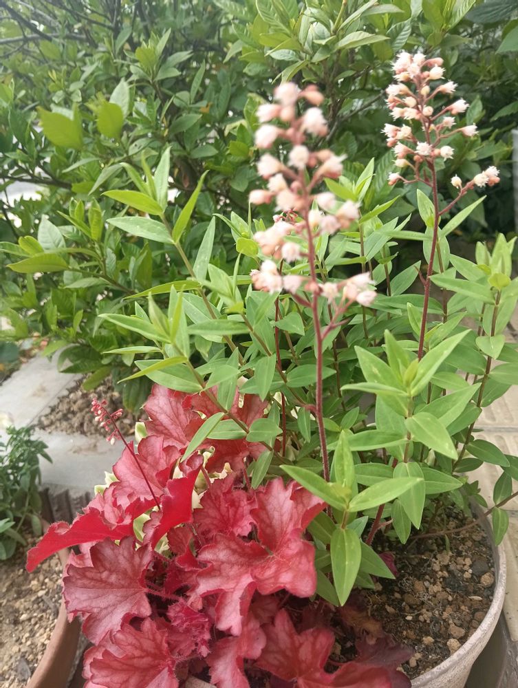 赤い葉が鮮やかです。去年植えてはじめて花が咲きました。