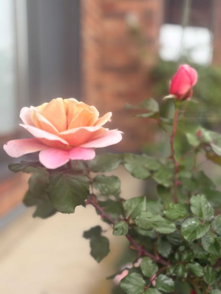 昨晩からの雨が止んだのでバラ達の様子を見に行くとディスタントドラムスが咲き始めました🌹