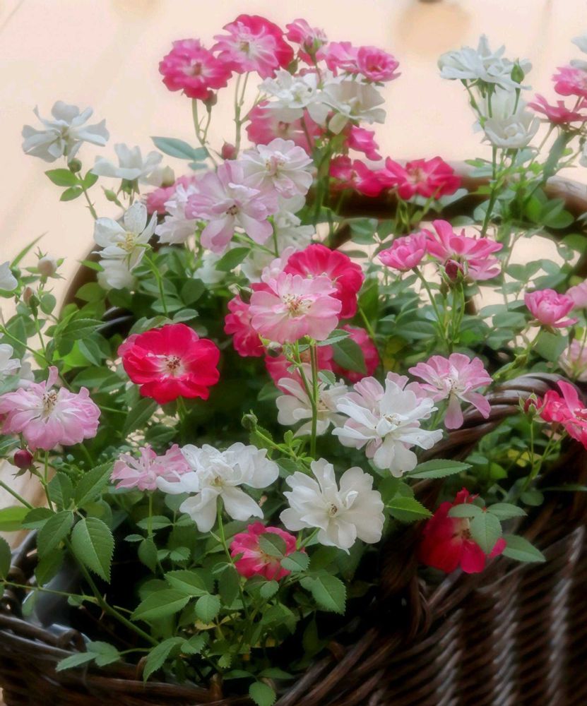 白色から濃いピンクまで咲いてくれるミニバラ🌹