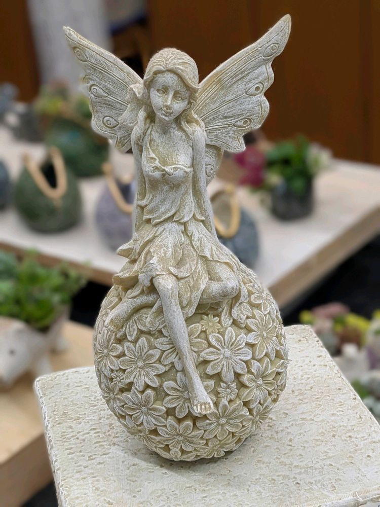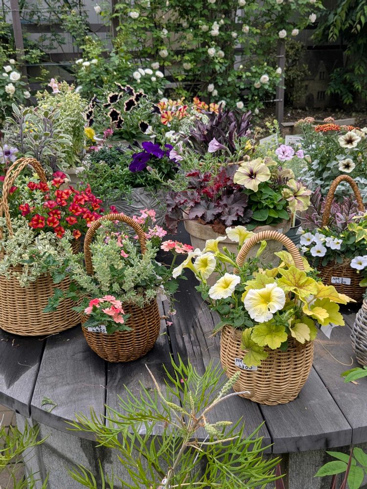 オープンガーデンに初めて行って来ました。1枚目は洗える籠に入った寄せ植えの販売品。2枚目は素敵な天使のオブジェ。