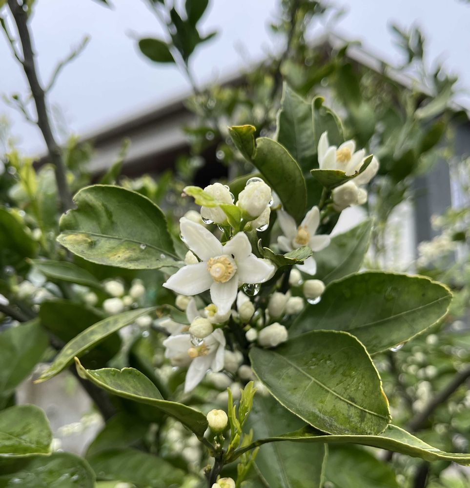 3️⃣ 夏みかんのお花です🌸🍊 近くを通ると、凄く甘い香りがしました😆👍🍊🌸 このお家に住んでる人に聞いたら夏みかんて言っていました😆👍🌸🍊💛🧡💛🧡🤍🤍