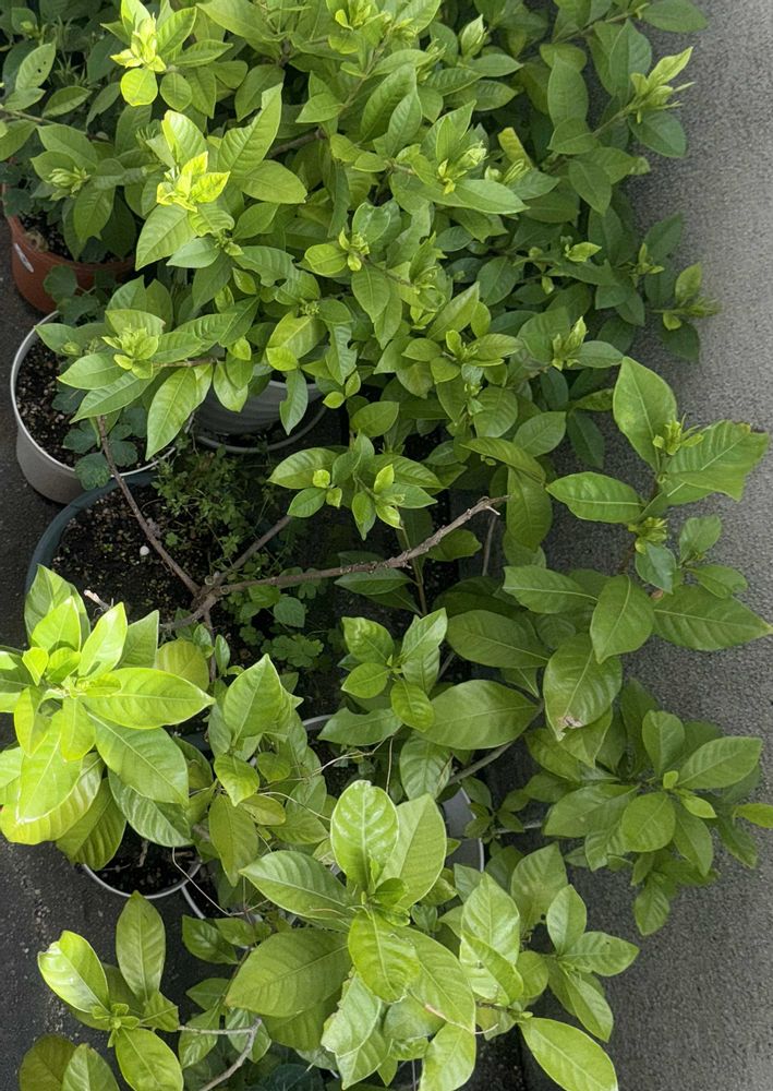 ♧↓下方には「ヤエクチナシ」が一鉢🪴デスが、別な場所には3鉢🪴🪴🪴養生中で、それぞれにも花蕾が2〜3個付いています。