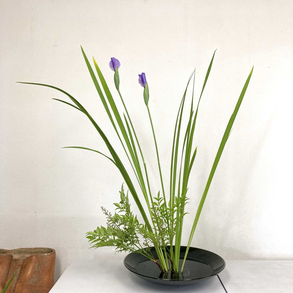 ナンテン,花菖蒲,いけばなの投稿画像