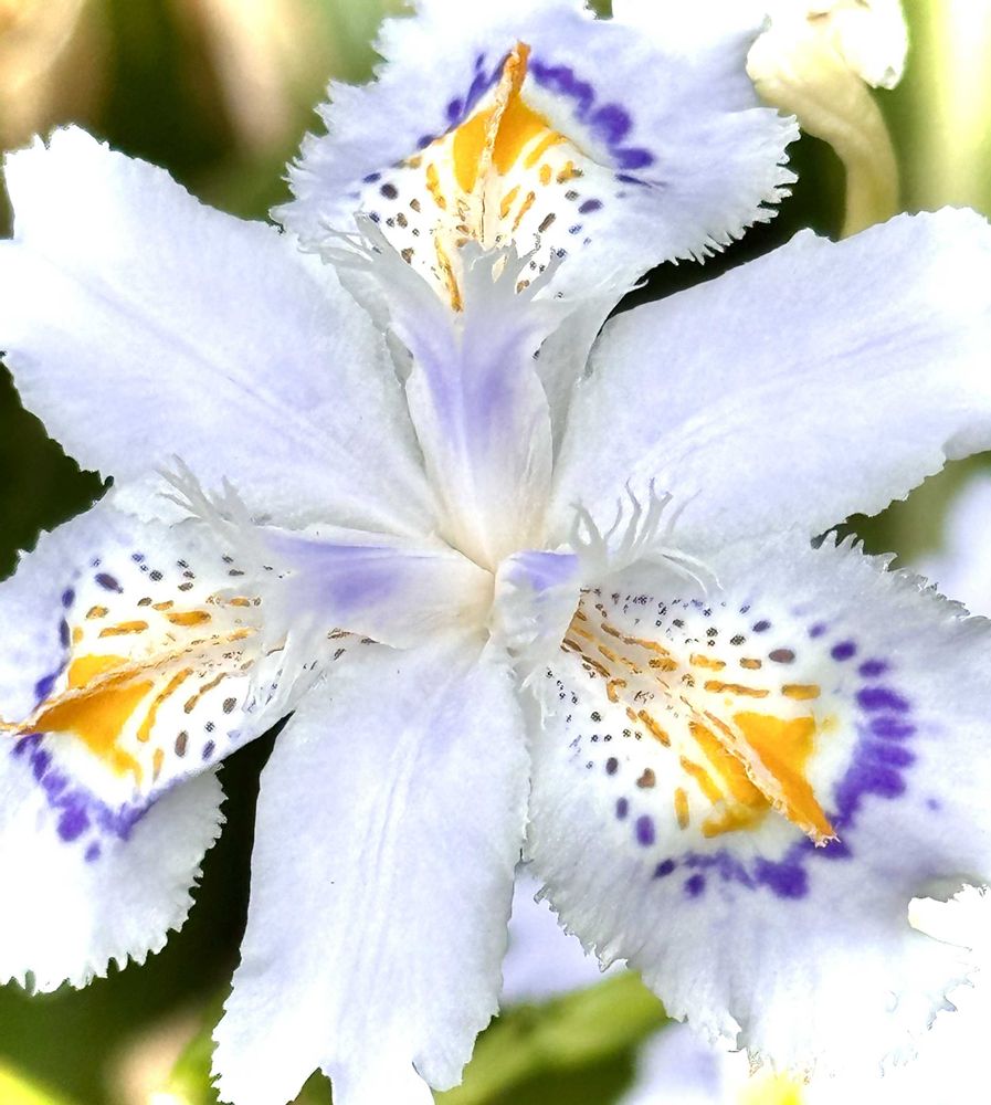 ☆花色はほのかに青みがかった白で、花弁の一部にブルーや黄色の斑点が入ります。