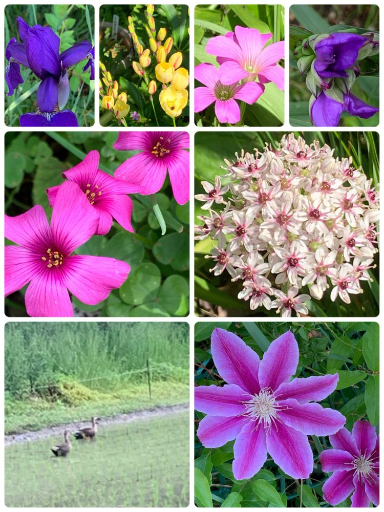 おはようございます😃☀️どのお花も綺麗ですね💕鴨さんの夫婦🦆🦆こちらにもたまに見かけるかな?クレマチスさんも綺麗ですね💕うちのとは少し色が違うかな?まだ咲かないです。早く咲きますように💕