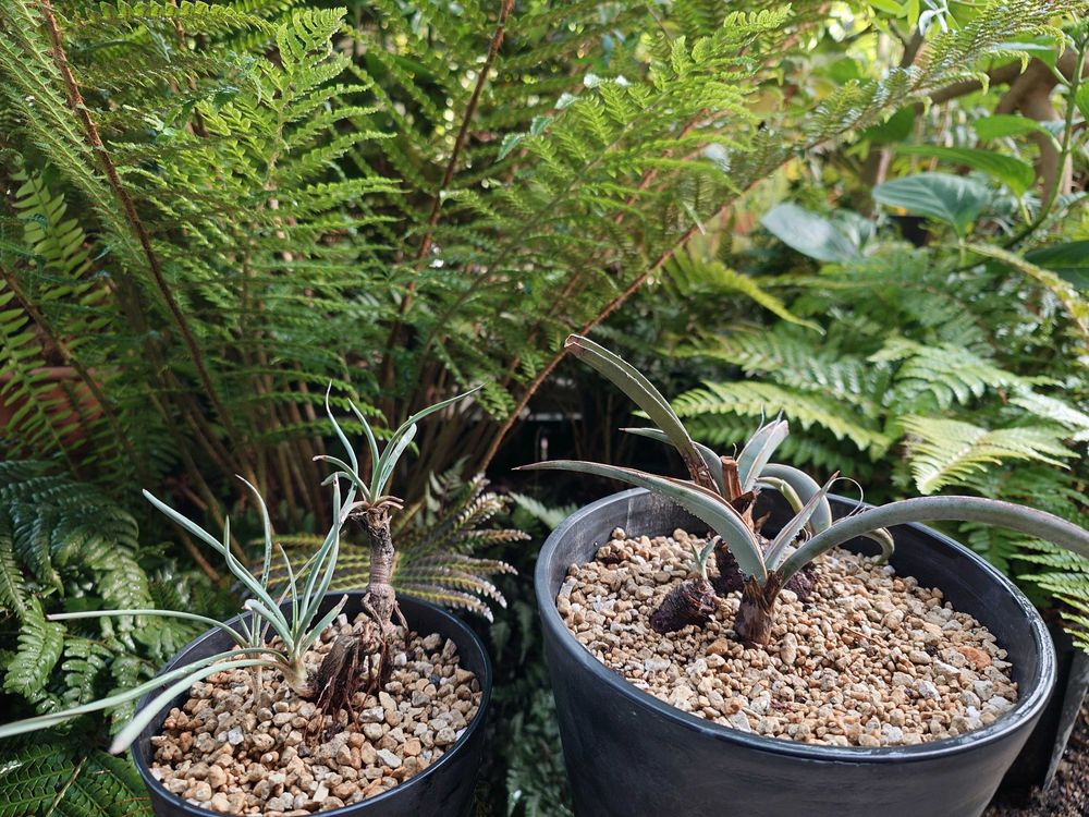 バッカタは、瀕死だった二株を一緒に植えてみました。一株に二芽×2あるのでどう復活するか楽しみ。瀕死のエラータも三芽あります。