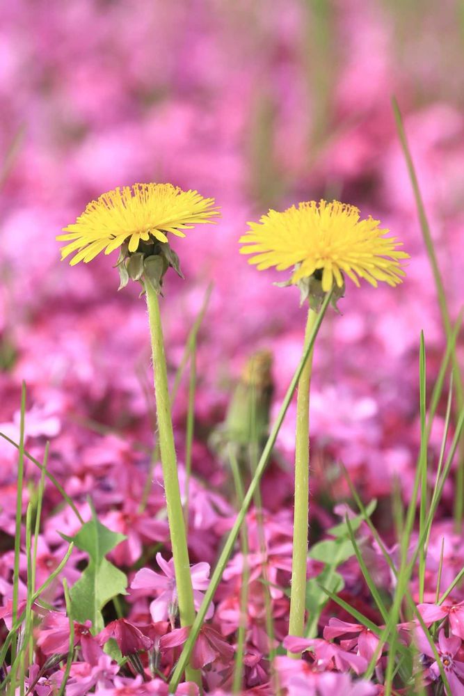 たんぽぽだけだと、可愛い♡で終わりますが、芝桜の中に咲いてるたんぽぽ♥️めっちゃ綺麗ですね〜🎶
